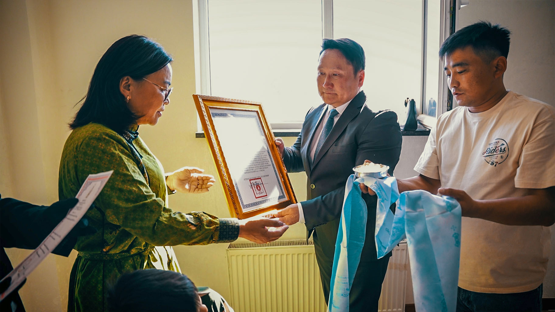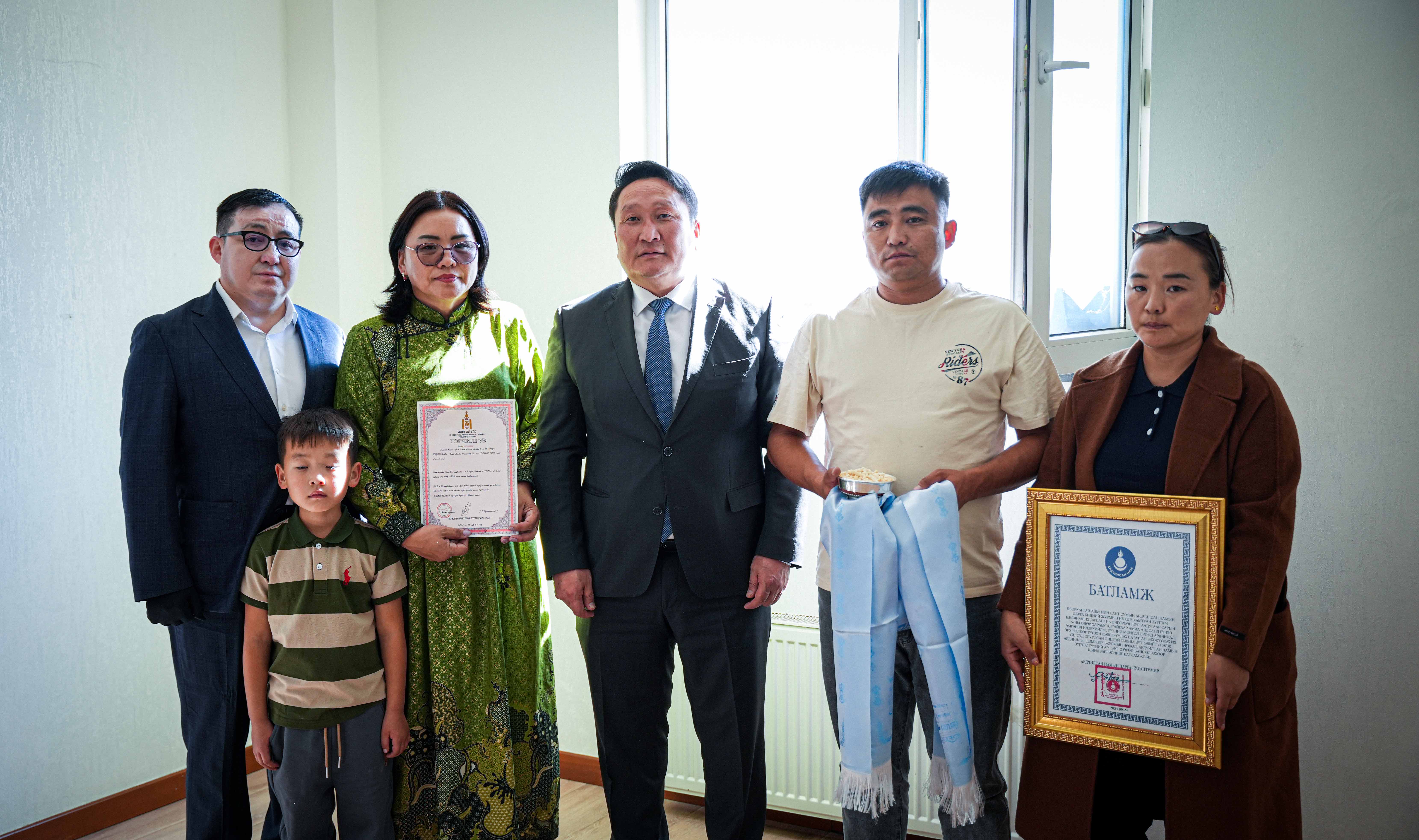 Байрны гэрчилгээ, түлхүүрийг Ардчилсан Намын ЕНБД-ын үүрэг гүйцэтгэгч Н.Ганибал, Ардчилсан Намын даргын ажлын албаны дарга Э.Галбадрал нар хүлээлгээ өгөв. Талийгаачийн гэр бүлийн зүгээс намын удирдлагад талархаж буйгаа илэрхийлж, ханийхаа болон түүний хамт олны итгэл, зүтгэлийг үргэлжлүүлэн авч явна гэдгээ илэрхийллээ.